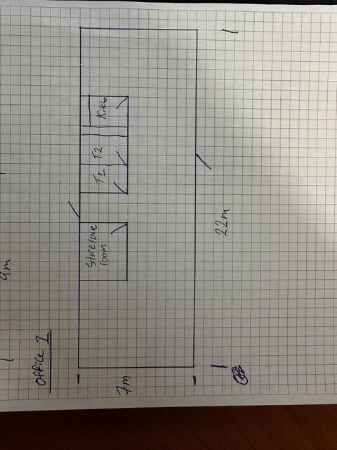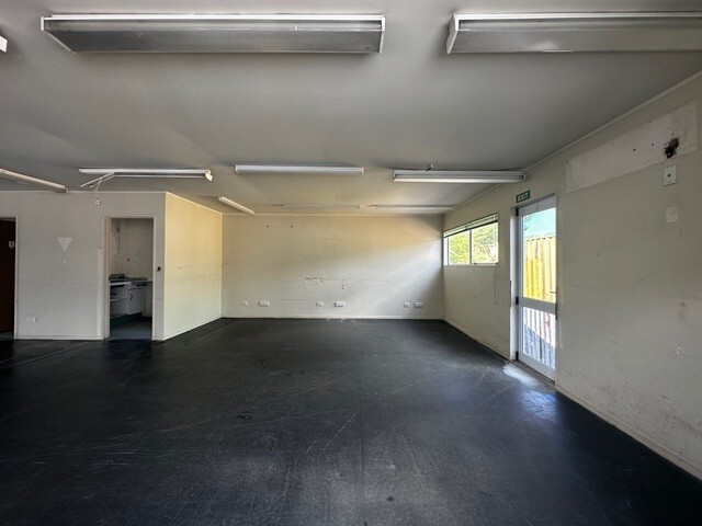 This 150sq metre office building with utilities has 1 bathroom 2 toilets, coffee room, data /storage room and a very large open plan room.